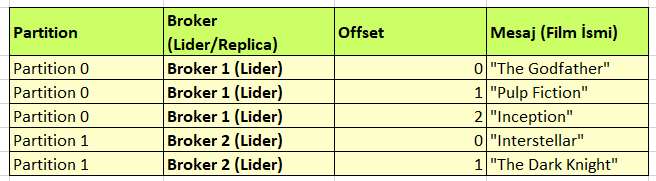 Offset 0’dan başlıyor ve her yeni mesajla birlikte 1 artıyor.
