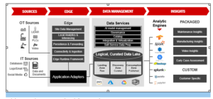 “Lumada Edge Intelligence”ın sağladığı esneklik sayesinde, operasyon yönetimi uygulamalarının ihtiyaçlarını karşılamak için bilgileri birçok farklı seviyede katmanlamamız mümkündür. Örneğin, “Lumada Edge Intelligence” basit bir ağ geçidi cihazında (“gateway”) çalışabilir ve bilgileri depolayıp iletebilir. Ek olarak ihtiyaç olması durumunda bilgileri daha büyük hesaplama “node”larına, veri merkezlerine ve buluta aktarabilir. “Lumada Edge Intelligence”, her seviyede ortamı yürütebilir, yönetebilir ve veriler zincirde dönüştürülürken ve aktarılırken bu verilerin değerini artırabilir. Önceki yazımda da ifade ettiğim gibi “Lumada Edge Intelligence”, Hitachi Vantara tarafından sağlanan daha büyük bir çözümün bir parçası olarak karşımıza çıkıyor, Şekil 2.