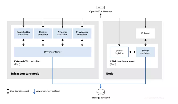 CSI’nin temel katkısı, depolama tarafındaki işlemleri OpenShift açısından soyutlamasıdır. Yani OpenShift tarafında “disk oluştur”, “bağla”, “büyüt”, “snapshot al” gibi operasyonlar standart API’ler üzerinden istenir. CSI sürücüsü de bu talepleri storage sisteminin anlayacağı şekilde gerçekleştirir. Bu süreçte sürücü, arka uç depolama üzerinde uygun bir mantıksal volume/kaynak oluşturulmasını ve bu kaynağın VM’i çalıştıran node’a bağlanıp kullanılabilir hale gelmesini koordine eder.